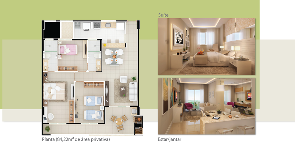 3 Quartos (1 suíte)  Cozinha  Área de serviço